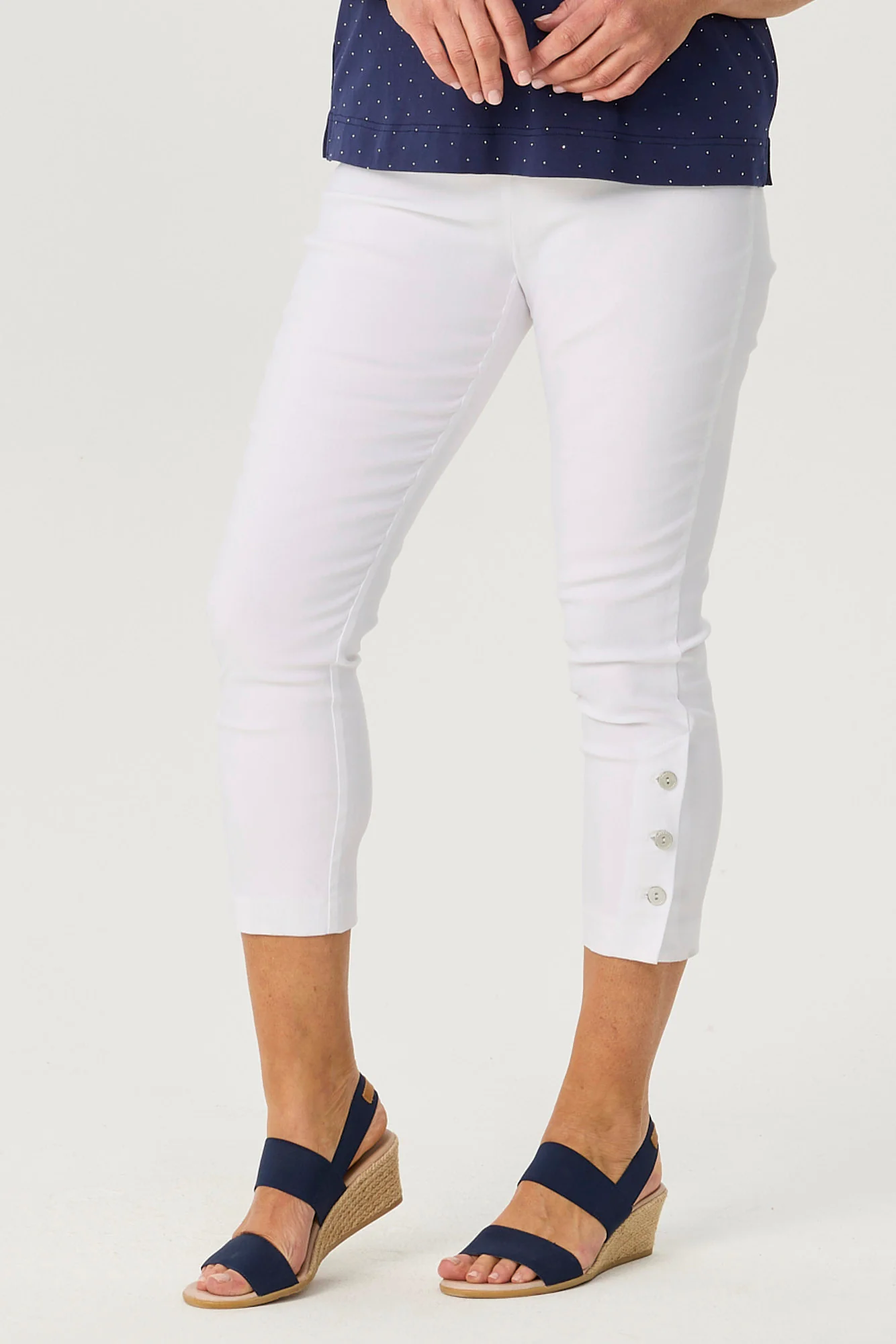 The Chaucer 7/8 Button Hem Pant are 7/8 pants that deliver easy movement and comfort for daily routines. The cropped length keeps the hem light and shows the ankle, which suits warmer days and easy styling. A relaxed fit skims the body for comfort and gives you room to move through the day. Stretch through the fabric supports easy movement and helps the fit recover after wear across everyday activity.
