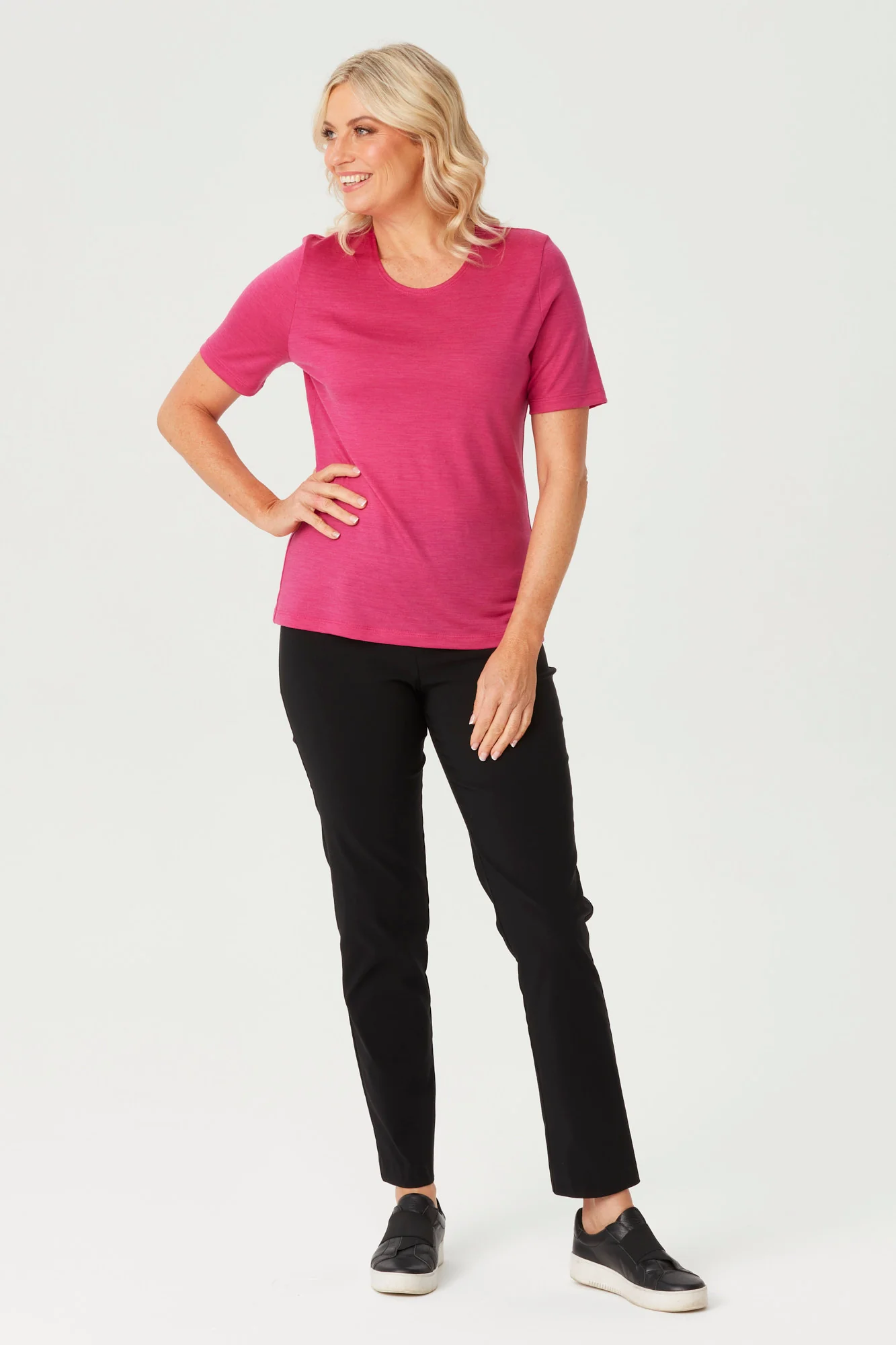 The Hedrena Classic Short Sleeve Tee in French Rose is a tee that delivers warmth without bulk for warm-weather days. Wool fabric feels breathable, keeping the tee comfortable against the skin during long wear. Short sleeves keep the arms light and make the piece practical for warmer conditions. The overall cut makes it easy to wear on its own or under a light layer when temperatures shift.