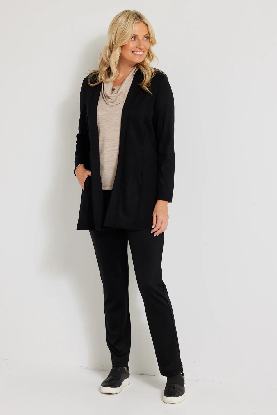 The Hedrena Interlock Swing Cardigan is a cardigan that delivers warmth without bulk for cooler-weather layering. Merino wool fabric feels soft, keeping the cardigan comfortable against the skin during long wear. A swing shape moves easily and sits away from the body for a comfortable, airy feel. Made in Australia, it brings local production to a piece designed for regular rotation and frequent wear.